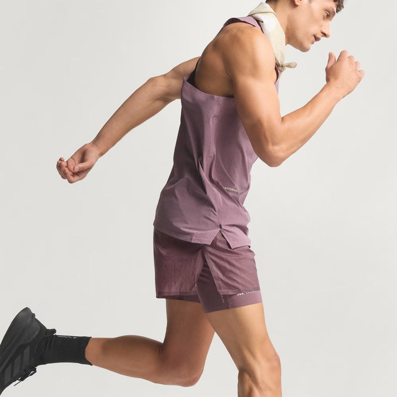 Training in warmer conditions or preferring sleeveless tops for maximum ventilation? This collaboration singlet suits runners wanting distinctive style alongside functional performance—particularly those running in heat, doing track sessions, or racing where minimizing weight and maximizing airflow matter. Perfect for runners appreciating standout design that performs technically, those training early mornings or evenings needing reflective features, or anyone seeking sustainable running apparel with racerback comfort. The bonded construction especially benefits runners who've experienced chafing with traditional singlet seams.