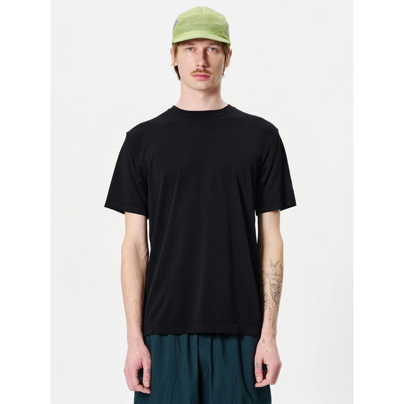 The Goldwin Men's Convexity Dry Tee uses proprietary knit fabric combining different materials and structures on inner and outer layers. Built for moisture management and comfort, this performance tee works across running, training, and outdoor activities.
