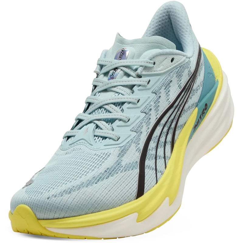 The breathable engineered mesh upper keeps weight minimal whilst providing secure containment during high-speed running. PUMAGRIP outsole uses durable rubber compound for multi-surface traction, maintaining grip on roads, tracks, and varied surfaces. At 15g lighter than the Deviate 3, every detail prioritises speed without sacrificing the maximal cushioning neutral runners need. The upper incorporates at least 20% recycled materials, combining performance with environmental consideration.
