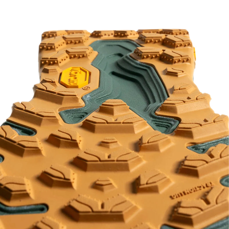 A Vibram® Megagrip lugged outsole features a revamped tread pattern with deeper, 6mm lugs for exceptional traction. This advanced outsole configuration maintains dependable grip across varied trail surfaces—from loose gravel through muddy sections to rocky technical terrain.