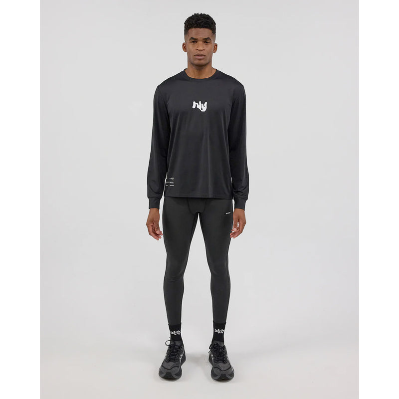 Introducing our Gridlock™ Distance Tight, the perfect addition to Fall training. Our Next Gen Half Tights, reimagined as a full length tight including 7 total pockets: 2 iPhone sized at outside thigh with waterproof liner, 4 gel-sized at back waistband, 1 zippered stash pocket at back yoke. Includes double layered fabric at the center-front panel for extra coverage. Limited edition fall branding at front thigh and custom branded drawstring with contrast Taxi bartack finish at waistband.