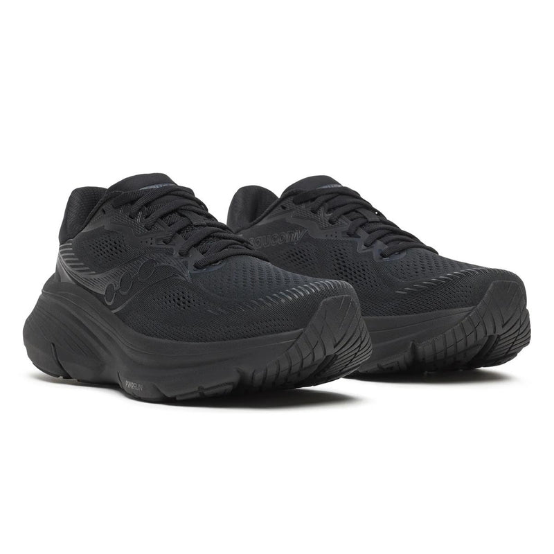 Men's Saucony Guide 19 Running Shoes Triple Black outer side view showing stability construction with cushioned midsole for guided road running