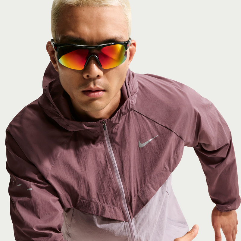Raglan sleeves reduce chafing under your arms and give you full range of motion. The adjustable hood lets you dial in a secure fit that actually stays put during your run. Reflective details on the back and Swoosh logo help keep you visible in low light.