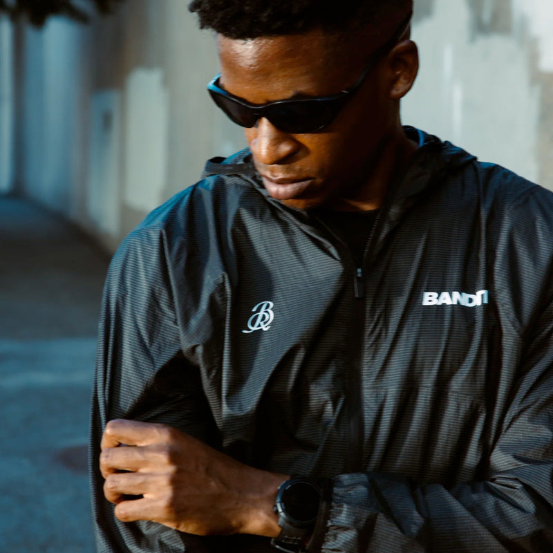 Introducing our Rocca Rip ™ Windbreaker Jacket, made in an ultra lightweight Italian milled contrast ripstop. This fabric constructed in a durable ripstop weave, all while being windproof and water repellent (PFC free, of course). Taped seams allows for this functional piece to be ultra lightweight, while the built up neck and shirred hood add to versatility as the temperature drop. A stylized vent at back body is pieced with our Vento™ fabric for ultimate airflow. Branded zipper pockets, a 2-way branded zipper at center front, as well as branded binding at cuff, hem and hood all add to the elevated feel of the jacket. Contrast branding at front chest and centerback neck.